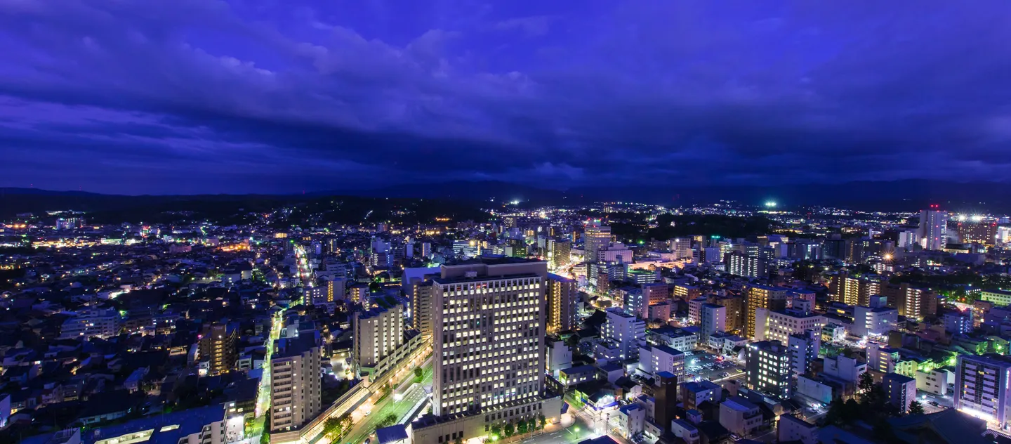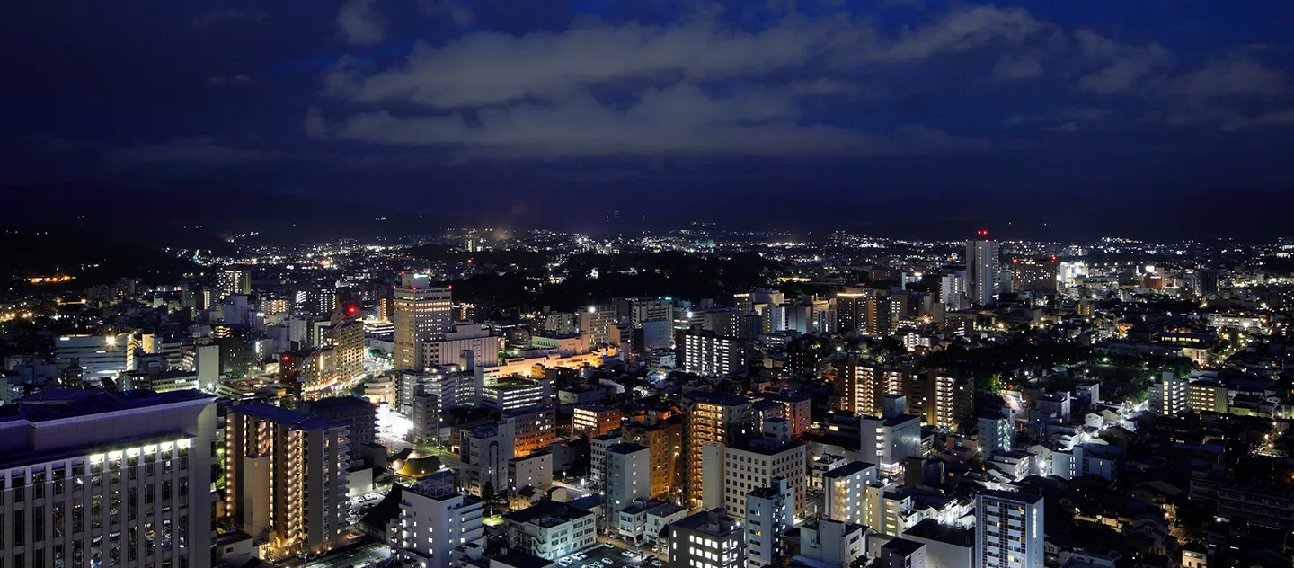 お昼は街の広がりと自然の稜線を、夜は城下町の落ち着いた灯りをお楽しみいただけます。