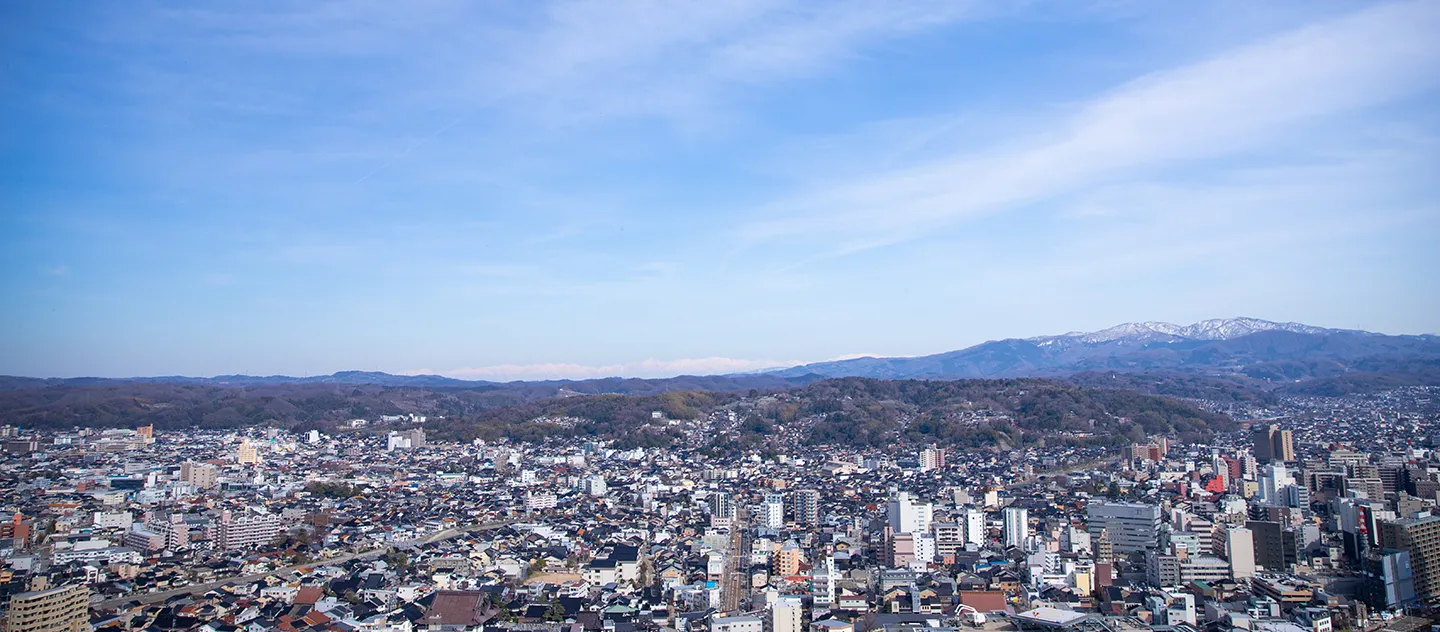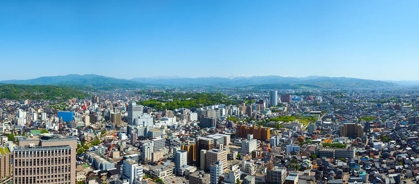 高層階から広がるのは、金沢の街と、その先に続く自然の景色。